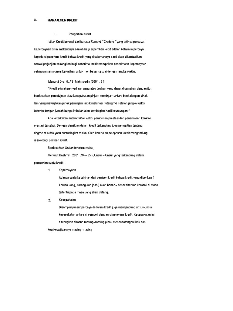 by L Hakim · 2018 · Cited by 3 — The results of research and discussion show that legal certainty made by the government as an effort to protect the banks and debtors while the ... Istilah penggolongan kredit dalam bagain ini adalah istilah yang digunakan untuk menunjukkan penggolongan kredit berdasarkan kolektibilitas kredit yang menggambarkan kualitas kredit tersebut. Mengenai pengaturan penggolongan kolektibilitas kredit terdapat dalam peraturan Bank Indonesia No. 7/2/PBI/2005 tentang penilitian kualitas aktiva bank umum. (**) Perhitungan berdasarkan 1,286.539.792 saham pada 31 Desember 2016 setelah stock split dengan ... penggunaan fasilitas kredit perdagangan dari bank. 1998 menilai kualitas portofolio kredit berdasarkan kolektibilitasnya. Terdapat lima golongan kolektibilitas kredit, yaitu kolektibilitas Lancar (Passed), Dalam Perhatian Khusus (Special Mention), Kurang Lancar (Substandard), Diragukan (Doubtful), dan Macet (Loss). Penggolongan kolektibilitas kredit tersebut