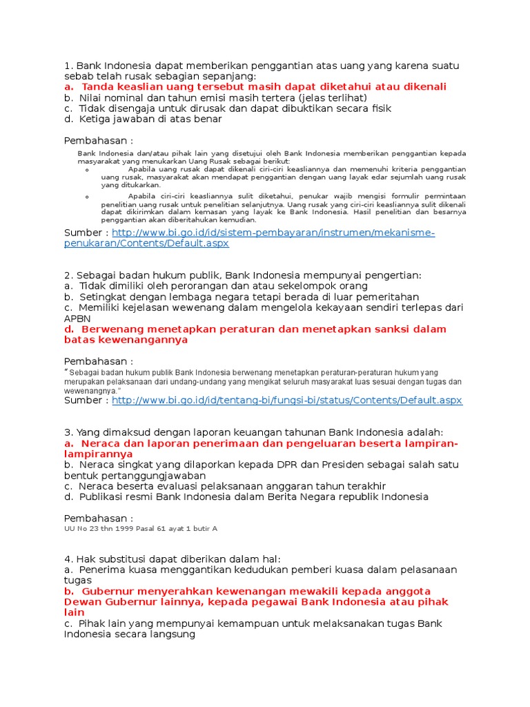 Di dalam UUD 1945 di sebutkan bahwa "Bahasa Negara Adalah Bahasa Indonesia, (pasal 36). Proklamasi Kemerdekaan Republik Indonesia pada tanggal 17 Agustus 1945, telah mengukuhkan kedudukan dan fungsi bahasa indonesia secara konstitusional sebagai bahasa negara. KOMPAS.com - Bank Indonesia adalah bank sentral independen yang bebas dari campur tangan pemerintah dan atau pihak-pihak lain. Berdasarkan Undang-undang No. 23 Tahun 1999, Bank Indonesia telah disahkan pada tanggal 17 Mei 1999. Sejarah . Pada tahun 1828, Belanda menerbitkan hak Oktroi (Hak Istimewa) untuk membentuk De Javasche Bank (DJB) guna mengatasi permasalahan ekonomi dan keuangan yang ... Sejarah Bank Sentral. Bank sentral di Indonesia pada saat ini adalah Bank Indonesia yang berdasarkan UU No 13 Tahun 1968 yang kemudian ditegaskan lagi dengan UU No 23 Tahun 1999. Bank Indonesia pada awal mulanya berasal dari hasil nasionalisasi bank yang bernama De Javasche Bank pada tahun 1951.