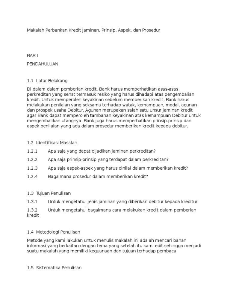 Sebelum suatu fasilitas kredit diberikan maka bank harus merasa yakin bahwa kredit yang diberikan harus benar-benar akan kembali. Keyakinan tersebut diperoleh dari hasil penelitian kredit sebelum kredit tersebut disalurkan. Penelitian kredit oleh bank dapat dilakukan dengan berbagai cara untuk mendapatkan keyakinan tentang nasabahnya, seperti melalui prosedur penilaian yang benar dan sungguh ...