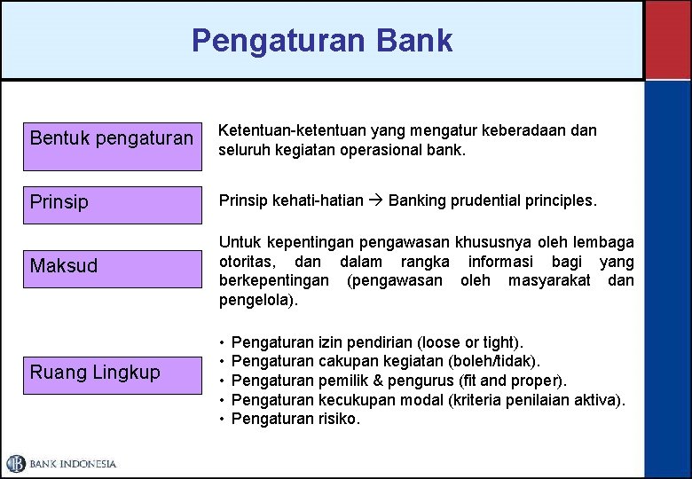 Prinsip kehati hatian bank (prudential banking). 1.1 Pengertian Prinsip Kehati – hatian (Prudential Banking). Menurut ketentuan Pasal 2 Undang – undang nomor 10 Tahun 1998 dikemukakan, bahwa perbankan ...62 pages by T Dendhana · 2013 · Cited by 6 — PENERAPAN PRUDENTIAL BANKING PRINCIPLE DALAM UPAYA PERLINDUNGAN HUKUM BAGI ... Manfaat dengan diterapkannya prinsip kehati-hatian bank, yaitu: (1) Bagi bank ... by WR Yanti — PT. Bank Pembangunan Daerah, Tbk. (Bank Jatim) Cabang Batu merupakan salah satu bank daerah Jawa Timur yang menerapkan prinsip kehati-hatian (prudential banking) ...6 pages by L Sjofjan · 2015 · Cited by 7 — Dimana kepatuhan terhadap prinsip- prinsip tersebut berpengaruh terhadap tingkat kesehatan bank syariah itu sendiri. Prinsip kehati-hatian (prudential banking ...