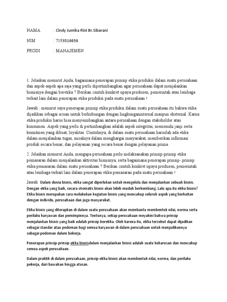 Tujuan Penerapan Etika Usaha dan Tata. Perilaku. 1) Memberi panduan kepada Perusahaan dalam menjalankan kegiatan bisnis sesuai standar etika usaha untuk.98 pagesMissing: contoh+ | Must include: contoh+