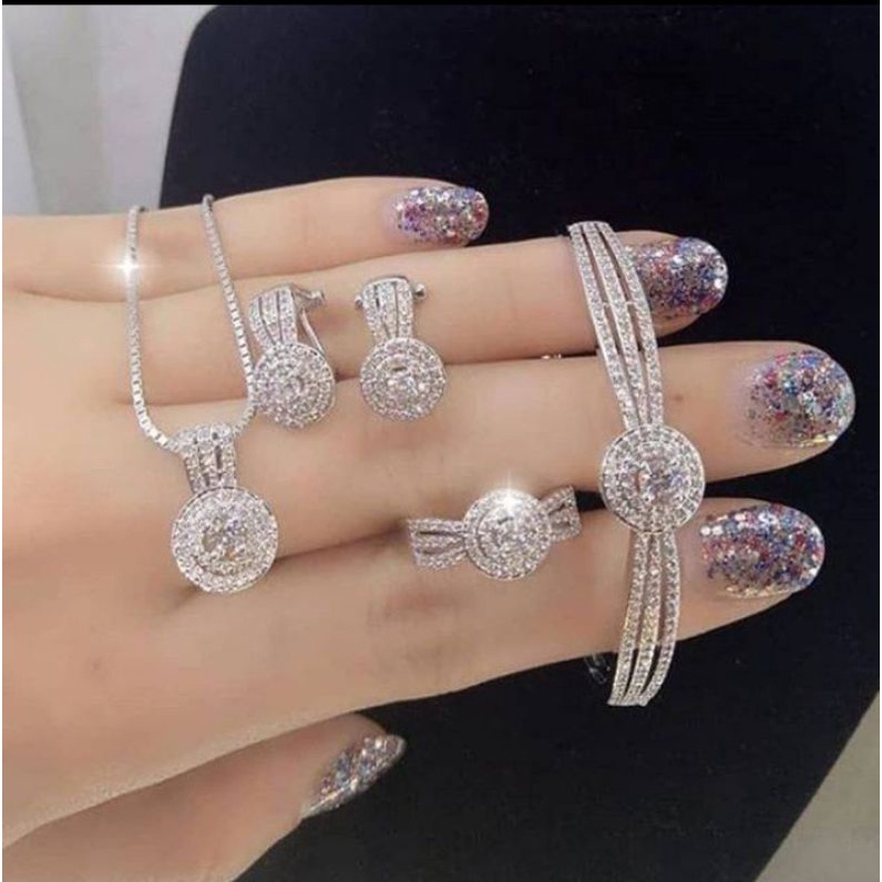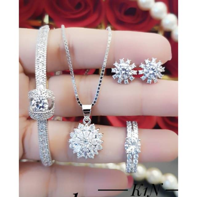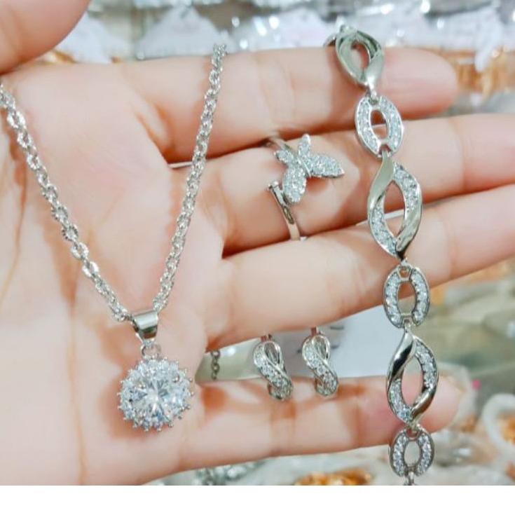 Satu set perhiasan itu terdiri dari sebuah gelang emas putih lima mata berlian sebuah kalung emas putih dua buah anting emas putih mata berlian dan sebuah cicin emasadapun barang tersebut. Perhiasan xuping 1 set lapis emas 18k: Padu padankan aksesoris memadukan aksesoris dengan tepat dapat membuat kamu tampil lebih fashionable.