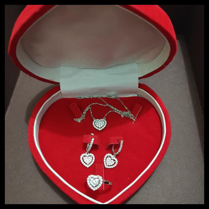 Satu set perhiasan itu terdiri dari sebuah gelang emas putih lima mata berlian sebuah kalung emas putih dua buah anting emas putih mata berlian dan sebuah cicin emasadapun barang tersebut. Promo berlaku untuk perhiasan emas dan perhiasan berlian dari brand orori dengan badge diskon hijau. Keempat satu set perhiasan emas putih.