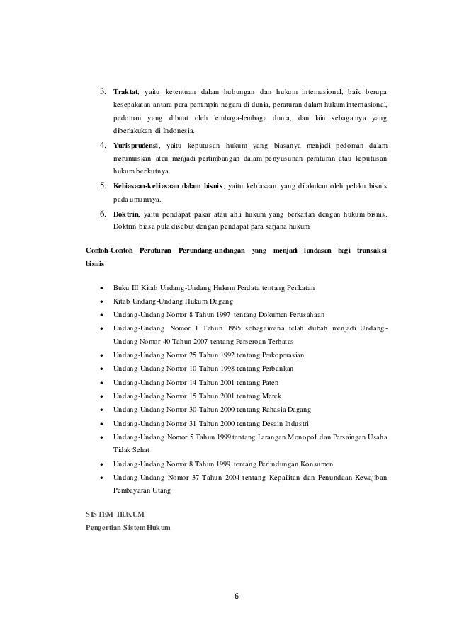 dalam Pancasila, maka Pancasila dapat menjadi sistem etika yang sangat kuat, nilai-nilai yang ada tidak hanya bersifat mendasar, namun juga realistis dan aplikatif. Aspek Hukum dalam Bisnis. BAB I PENDAHULUAN A. Latar Belakang . Istilah Hukum Bisnis merupakan sesuatu yang masih baru di Indonesia. Kata ’Bisnis’ dipinjam dari Bahasa Inggris yaitu business, yang artinya urusan, usaha atau melakukan kegiatan yang bermanfaat yang mendatangkan keuntungan dan berguna. Kegiatan yang demikian di Indonesia ... Bisnis Dalam Perspektif Islam (Telaah Konsep, Prinsip dan Landasan Normatif) ... dalam segala aspek operasional . perusahaan. ... penerima suap di dalam hukum. (HR. Ahmad, Abu Dawud, dan Tirmizi ... Pembangunan masyarakat hukum (sosialisasi hukum di masyarakat), dan Pemberantasan KKN (Korupsi, Kolusi, dan Nepotisme) dalam semua aspek kehidupan. Dari adanya jaminan keadilan bidang hukum ini maka diharapkan timbul motivasi untuk tanggung jawab, disiplin, dan tertib hukum dalam kehidupan.