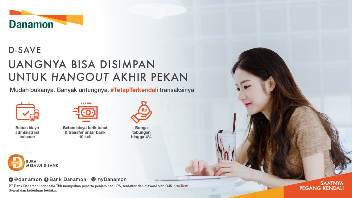 Tabungan tanpa biaya administrasi, transfer lebih murah dan gratis asuransi jiwa. ... (D-Bank), internet banking (Danamon Online Banking), ATM, SMS Banking, and Hello Danamon. D-Bank Mobile Banking services based on applications for Android and iOS smartphones with the latest banking services and features. ...