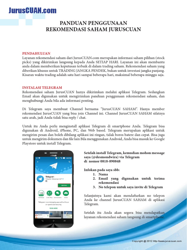 Rekomendasi Investasi Jangka Panjang di Pasar Saham Indonesia Kami memberikan rekomendasi saham jangka panjang untuk para investor muda yang ada di Indonesia melalui artikel yang kami berikan setiap bulan dalam format yang mudah dibaca. Selain itu, kami ingin membantu investor Indonesia untuk membuat keputusan yang tepat dan meraih keuntungan yang maksimal di pasar modal. Daftar Sekarang