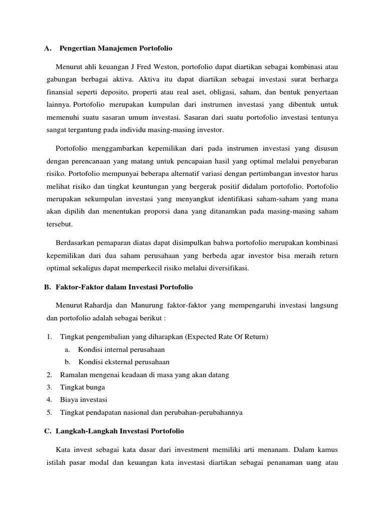 Pengertian Saham Menurut Para Ahli, Berikut Jenis... | merdeka.com Lebih jauh berikut ini pengertian saham menurut para ahli, lengkap dengan jenis dan keuntungannya yang telah dirangkum merdeka.com melalui liputan6.com dan eprints.polsri.ac.id. Pengertian Hutan Menurut para Ahli - Lengkap TUNTAS Mari belajar tentang pengertian hutan menurut para ahli dan pengertian hutan secara umum. Kalian harus baca ini agar kalian tahu apa itu hutan Pengertian Hutan menurut United Nations Framework Convention on Climate Change. Pengertian hutan menurut International Union of Forest Research... 8 Pengertian Return On Investment (ROI) Menurut Para Ahli Lengkap 8. Suad Husnan dan Enny Pudjiastuti. ROI yakni segala rasio yang dapat menunjukkan banyaknya laba bersih yang doperoleh perusahaan dari seluruh kekayaan yang perusahaan miliki. Demikianlah penjelasan terlengkap mengenai √ 8 Pengertian Return On Investment (ROI)...