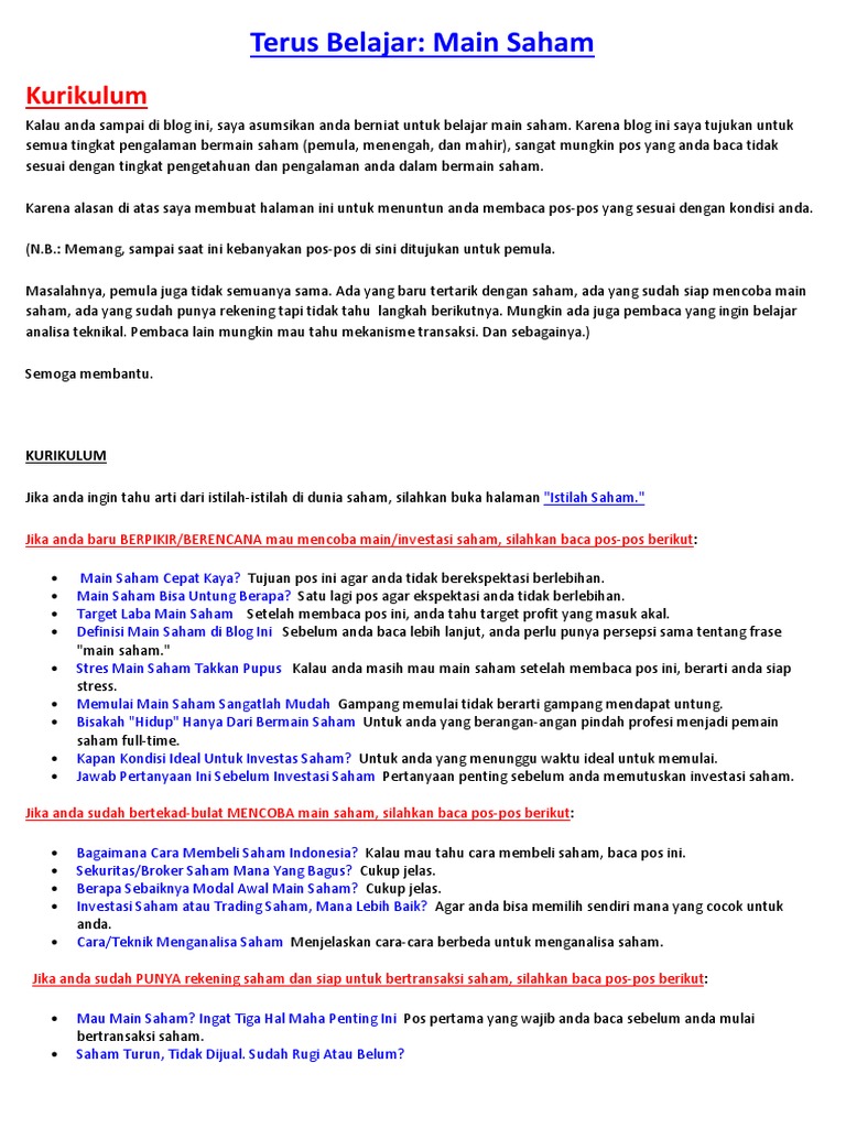 Analisis teknikal saham pdf. Analisis Teknikal Saham 2 Analisis Teknikal Saham 2. 1. TRAINING Technical Analysis 12 Nov 2009 Haryajid Ramelan, CFP®, RFC®, CPRM®, RIFA® 1. 2. TRAINING TECHNICAL ANALISIS Bagian Pertama 1. Introduction (TA) 2. Fundamental Vs TA 3. Dasar Analisa Teknis 4. Theory Dow 5. Three Past of Market 6. Trend... Analisis Teknikal Saham PDF Solutions Inc (PDFS) Analisis Teknikal PDFS. Dapatkan rekomendasi ringkas - sinyal Sangat Jual, Jual, Sangat Beli, Beli, atau Netral mengenai saham PDF Solutions Inc. Dapatkan akses ke analisis teknikal terperinci melalui sinyal jual/beli moving average (sederhana dan eksponensial untuk periode 5,10,20,50,100... Strategi Analisis Teknikal Saham PDF Yap, berikut tiga ebook analisis teknikal saham PDF tersebut: 1. Ebook Trading Saham Full Analisis Teknikal (353 halaman). Ebook trading saham full analisis teknikal membahas semua hal yang berkaitan dengan analisa teknikal mulai dari cara membaca chart, indikator2 saham, candlestick... (PDF) TEKNIKAL ANALISIS UNTUK PEMULA - Academia.edu TEKNIKAL ANALISIS UNTUK PEMULA Mulai Dari Sini CONTENT 1. Pengenalan Analisis Teknikal 2. Menggunakan Analisis Teknikal 3. Istilah-Istilah dalam Analisis Teknikal a. Support dan Resistance b. Breakout dan Breakdown c. False Breakout dan False breakdown d. Trend Saham...