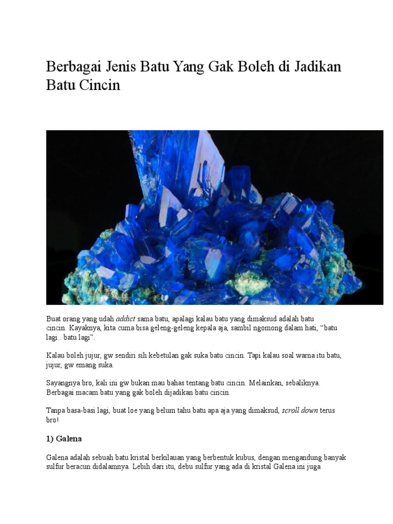 3 Manfaat Batu Galena Bagi Industri Yang Sangat... - Manfaat.co.id Berbeda dengan jenis batuan lain seperti batu akik, batu permata serta batu alam. Batu galena atau biasanya disebut dengan galenit merupakan jenis Hal ini dikarenakan harga batu galena selalu meningkat dan tidak pernah menurun. Keuntungan dari penjualan batu galena pun sangat drastis jika...