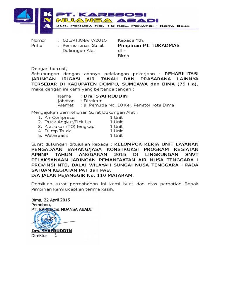 Surat Kepemilikan Perusahaan - Contoh Surat surat kepemilikan perusahaan - Surah resmi biasanya banyak dipakai bagi keperluan instansi, organisasi, kepentingan dinas, / kepentingan antar perusahaan. Meskipun begitu surat formal tidak harus selalu dibuat oleh kelompok, bisa juga disusun oleh individu. Contoh surat resmi yang disusun oleh individu adalah surat lamaran kerja, atau surat pengunduran diri dimana cara penulisan surat tersebut ...