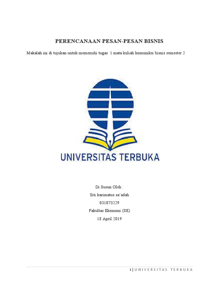 Tugas Makalah - Komunikasi Bisnis.docx... | Course Hero Tugas Makalah - Komunikasi Bisnis.docx - KOMUNIKASI BISNIS PERENCANAAN PESAN BISNIS Disusun Oleh: MUHAMMAD RIFQI SULTHON Tugas Makalah - Komunikasi Bisnis.docx - KOMUNIKASI BISNIS... School State University of Semarang. Course Title ECONOMIC Acc.