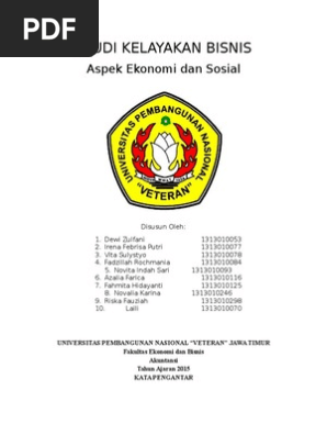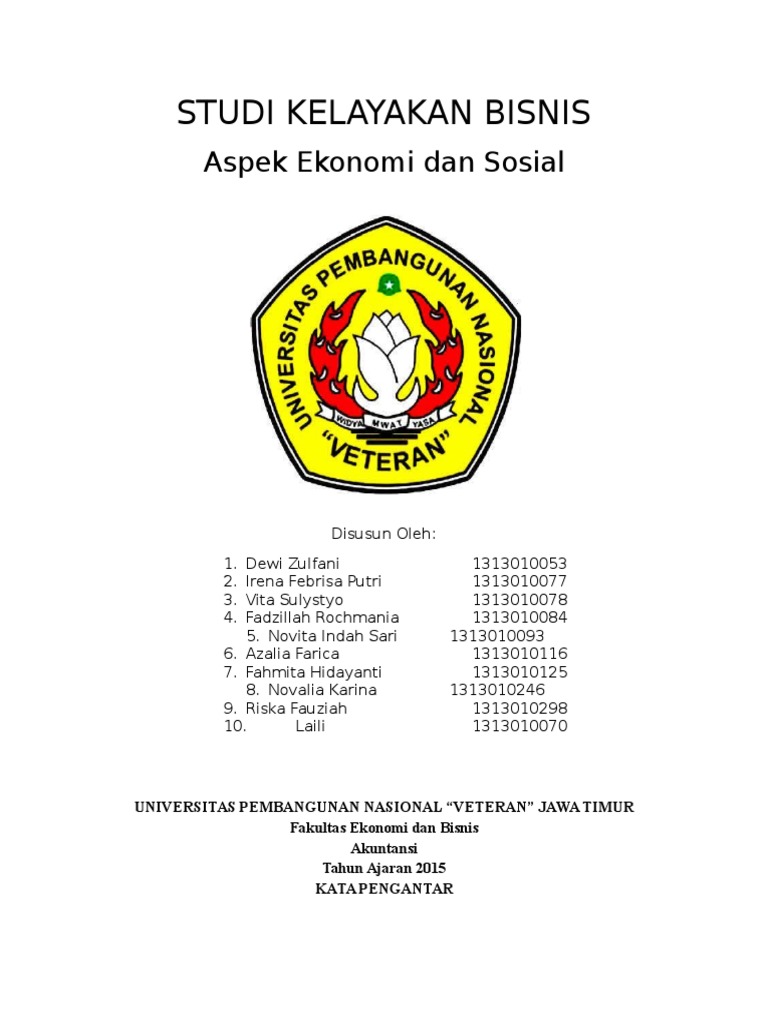 STUDI KELAYAKAN BISNIS tentang ASPEK EKONOMI DAN SOSIAL ... Puji dan syukur kami ucapkan kepada Tuhan Yang Maha Esa, karena atas berkat dan RahmatNya sehingga kami dapat menyelesaikan tugas makalah mata kuliah STUDI KELAYAKAN BISNIS tentang ASPEK EKONOMI DAN SOSIAL DALAM STUDI KELAYAKAN BISNIS.