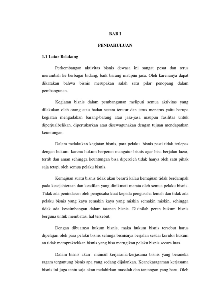 (PDF) Makalah Pengantar Hukum Bisnis | awan hayun - Academia.edu Makalah Pengantar Hukum Bisnis. BAB I PENDAHULUAN A. Latar Belakang Manusia pada dasarnya adalah makhluk sosial yang tidak dapat hidup sendiri. Manusia memiliki naluri untuk hidup dengan lainnya. Karena itulah, sejak dilahirkan manusia sudah mempunyai dua kecenderungan pokok, yaitu keinginan untuk menjadi satu dengan manusia lain di ...