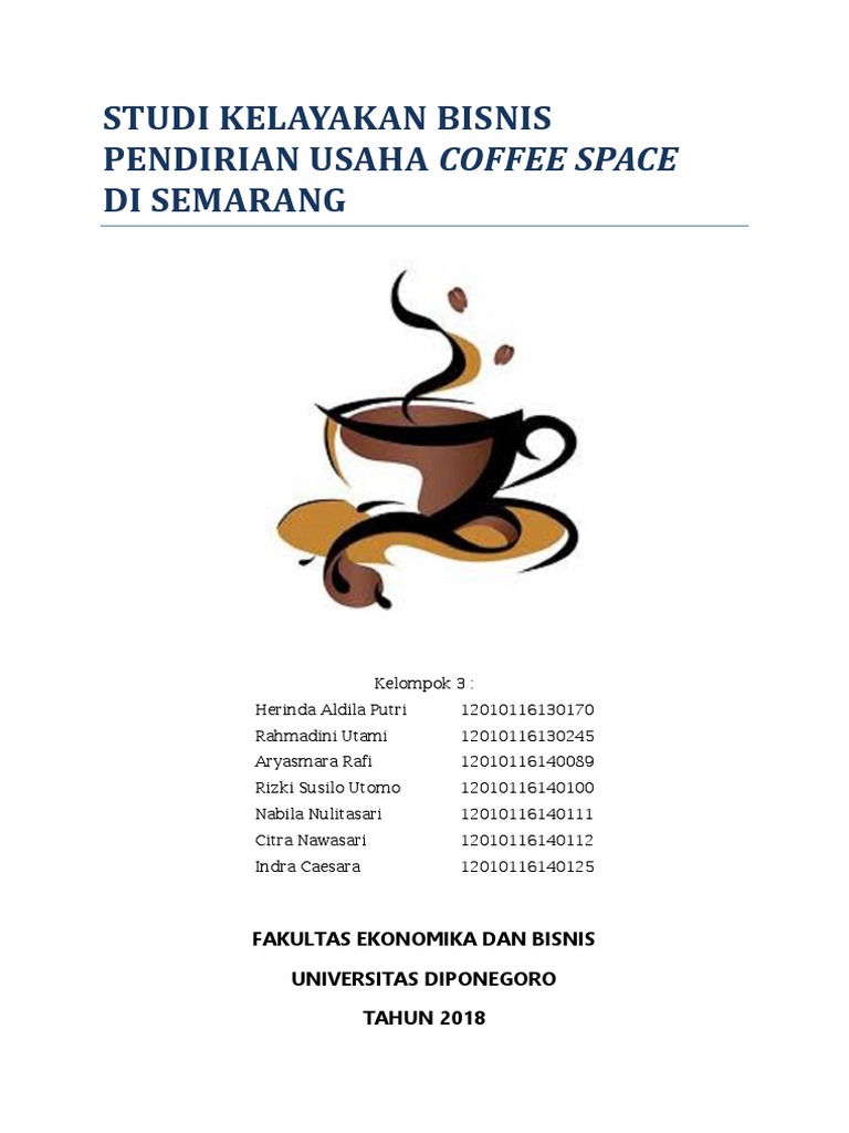 Contoh Makalah Studi Kelayakan Bisnis Kedai Kopi BAB I. PENDAHULUAN. A. Latar Belakang. Usaha ini dilatarbelakangi oleh semakinn berkembangnya perekonomian di daerah Kabupaten Kuningan. Hal itu dapat dilihat dengan perkembangan pusat bisnis dan perkantoran di pusat kota Kuningan.