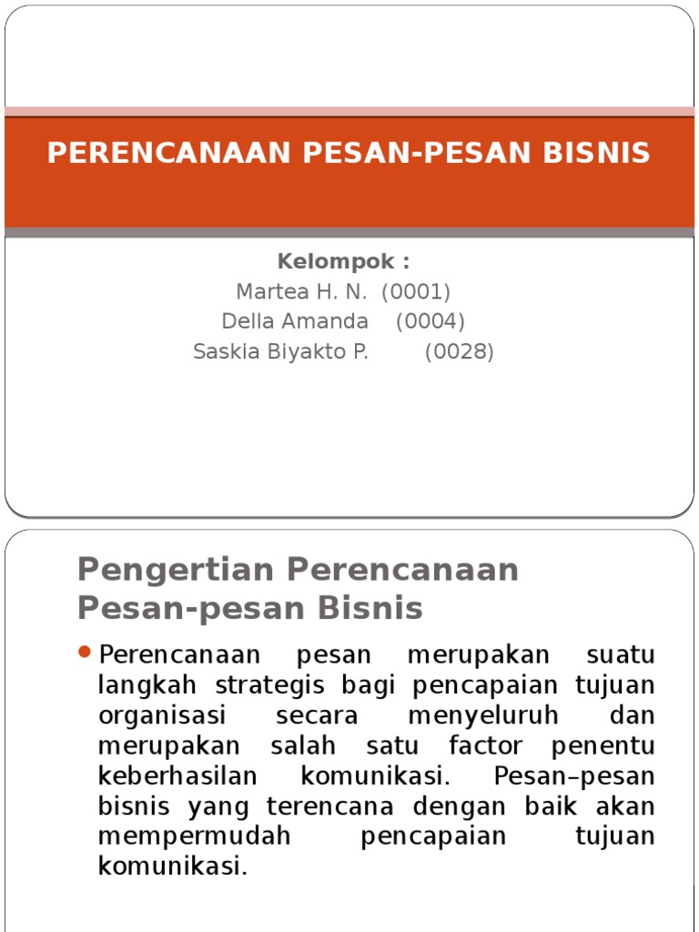 BAB 5 Perencanaan Pesan-Pesan Bisnis | PDF - Scribd V. PERENCANAAN PESAN-PESAN BISNIS. 5.1 Tujuan Instruksional Umum. Setelah perkuliahan bagian pertama atau pendahuluan dari materi Komunikasi. Bisnis.