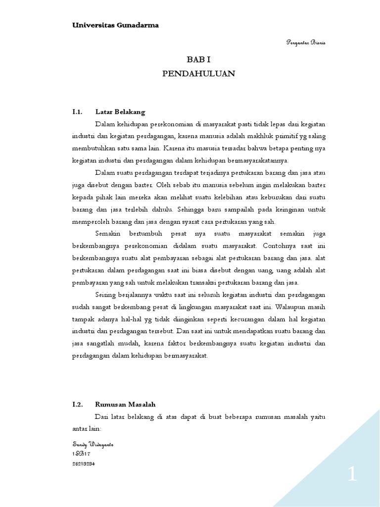 DOCX Official Site of WURI PURNAMASARI - Gunadarma University RUANG LINGKUP BISNIS. A. Latar Belakang Masalah. Pada era globalisasi saat ini, masyarakat indonesia khususnya para kaum muda masih bingung dengan manfaat dan tujuan dari bisnis. Padahal, jika kita memahami bisnis, kita akan mendapatkan keuntungan yang kita inginkan dalam aktivitas bisnis tersebut. RUANG LINGKUP BISNIS - keyturns RUANG LINGKUP BISNIS 1. Pengertian Bisnis dan Jenis serta Fungsinya a. Ada beberapa pengertian bisnis diantaranya : • Bisnis berasal dari kata business/busy yang berarti sibuk. Sibuk mengerjakan aktivitas dan pekerjaan yang mendatangkan keuntungan. Suatu organisasi yang menjual barang atau jasa kepada konsumen atau bisnis lainnya. • Bisnis dalam arti luas adalah istilah umum yang… Muhammad Afif Ibrahim: Makalah Ruang Lingkup Bisnis Makalah Ruang Lingkup Bisnis BAB 1 Pendahuluan. 1.1 Latar Belakang. Seperti yang kita ketahui, di masa lalu masih banyak masyarakat yang memandang pekerjaan bisnis dengan sebelah mata, karena bagi mereka bisnis itu tidak dianggap sebagai profesi terutama bagi para orang terpandang, kaum intelektual, maupun ahli agama. Ada pula factor psikologis ...