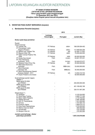 Laporan Keuangan - Bank Victoria Syariah Dec 31, 2013 — Triwulanan dan Bulanan serta Laporan Tertentu dari Bank yang Disampaikan kepada Bank Indonesia. Laporan Keuangan per 31 Desember 2013 telah ...