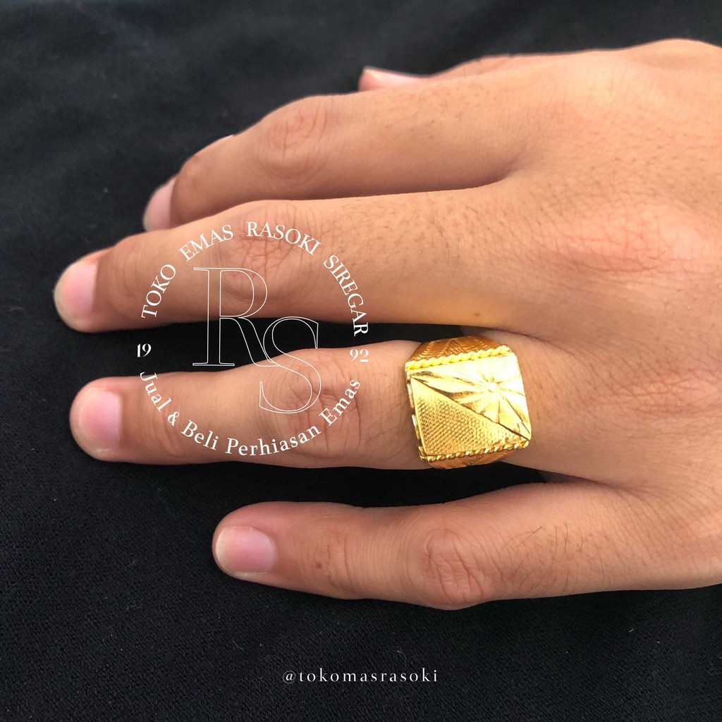 Koleksi Cincin Pria dengan Model Terupdate Model cincin pria yang satu ini cukup unik dengan gaya semi vintage retro ring. Bahan metal di Isi Emas Kuning 9K kualitas lebih awet dari cincin lapis emas. Terkadang, wanita yang punya gaya tersendiri dan kepercayaan diri untuk "ber-fashion" juga suka tipe cincin pria seperti ini .. jadi bebas saja jika anda ingin pakai cincin ini.