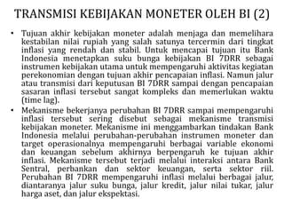 Kebijakan Moneter : Pengertian, Tujuan, Jenis, Peran & Contohnya Tujuan dari sebuah kebijakan moneter ini sendiri pada dasarnya untuk mencapai keseimbangan internal (pertumbuhan ekonomi yang tinggi, stabilitas harga, dan pemerataan pembangunan) serta keseimbangan eksternal (keseimbangan neraca pembayaran).