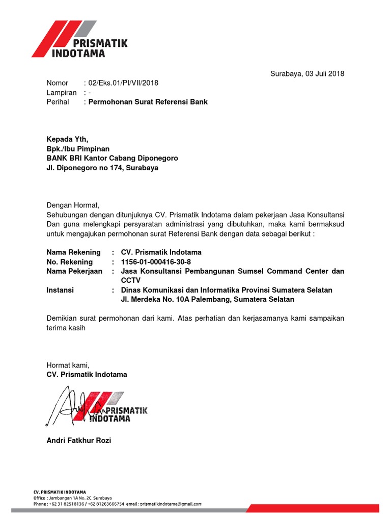 15 Contoh Surat Referensi Bank dari Berbagai Bank ... 19. Contoh Surat Permohonan Referensi Bank BRI Untuk Keperluan Beasiswa. Lampiran : - Perihal : Permohonan Referensi Bank . Kepada Yth: PT. Bank Rakyat Indonesia Tbk. Cabang Banjarnegara. Jl. Dipayuda No. 25 Banjarnegara . Dengan hormat, Sehubungan dengan rekening saya pada PT.