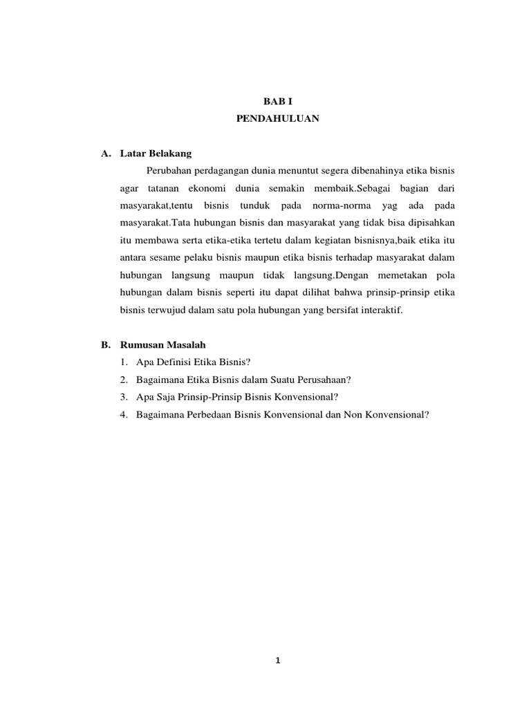 ETIKA BISNIS Prinsip-Prinsip Etika (Perbaikan) | PDF Apakah prinsip-prinsip itu berlaku universal, terutama mengingat kenyataan mengenai bisnis global yang tidak mengenal batas-batas negara dewasa ini? Tujuan 1. Untuk mengetahui pengertian Etika, Etika Bisnis dan Pelanggaran Etika Bisnis 2. Untuk mengetahui Prinsip prinsip Etika Bisnis yang...