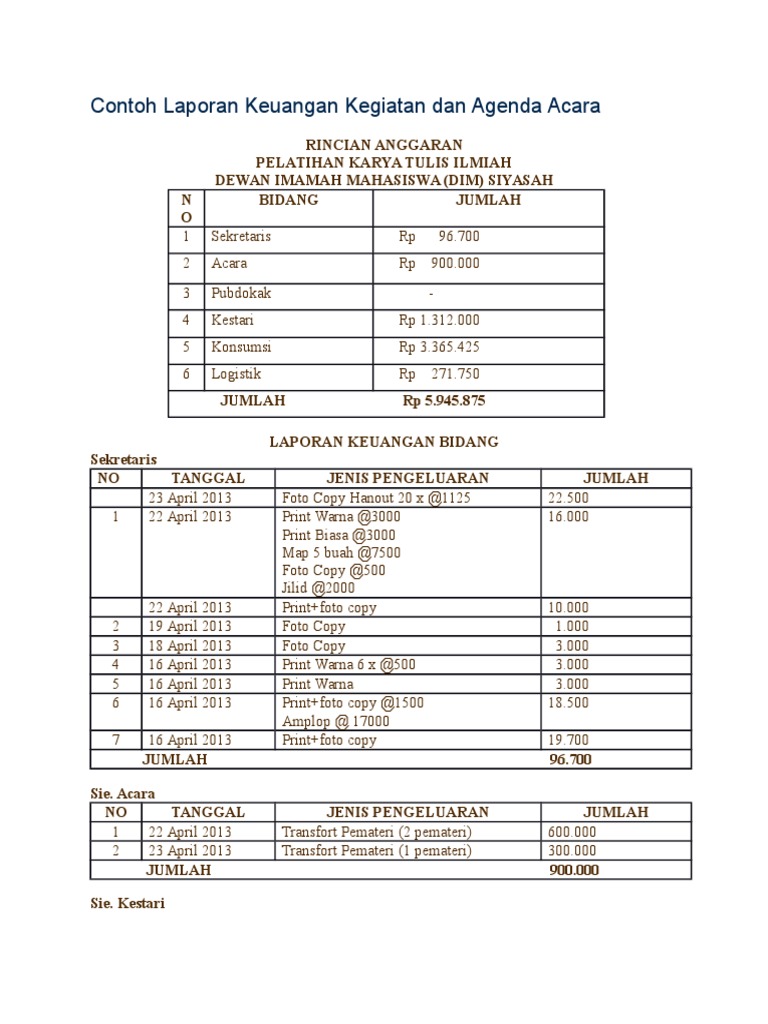 PDF Lampiran Proposal Kegiatan Seminar anggaran dana' 'contoh proposal kegiatan seminar entrepreneurship anita september 8th, ... 'CONTOH LAPORAN PERTANGGUNG JAWABAN KEGIATAN Dauz Biotekhno June 23rd, 2018 - Kami dari Panitia Pelaksana Kegiatan Lomba Karya Tulis Ilmiah dan RAKORWIL IKAHIMBI Wilker VI lampiran 1 SUSUNAN KEPANITIAAN Bantuan